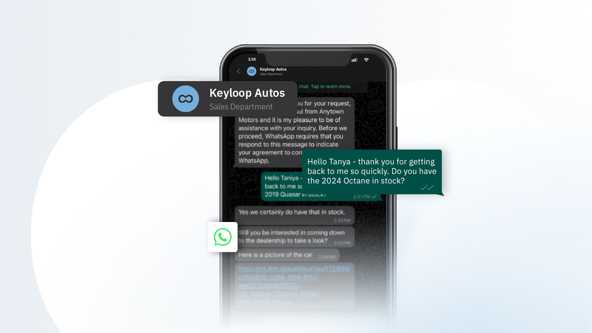 That’s why we’re launching our Keyloop WhatsApp integration for Keyloop Chat and Keyloop Leads (Premium).